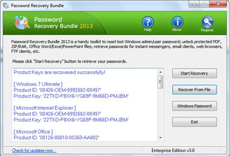 Bạn tải Password Recovery Bundle 2013 3.0 tại đây (dung lượng 33,26MB), tương thích mọi Windows.